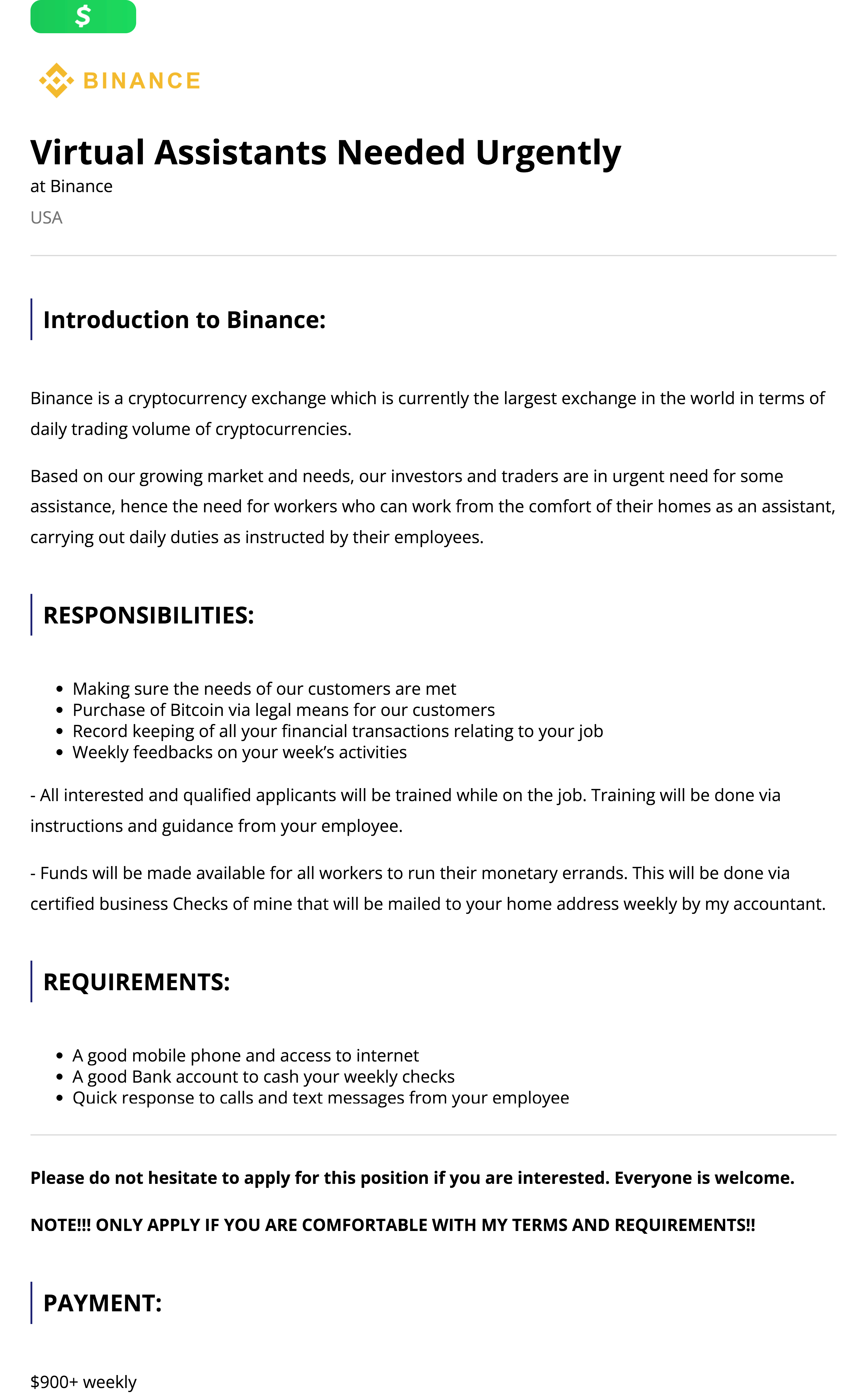 Only applicant with complete application will be contacted